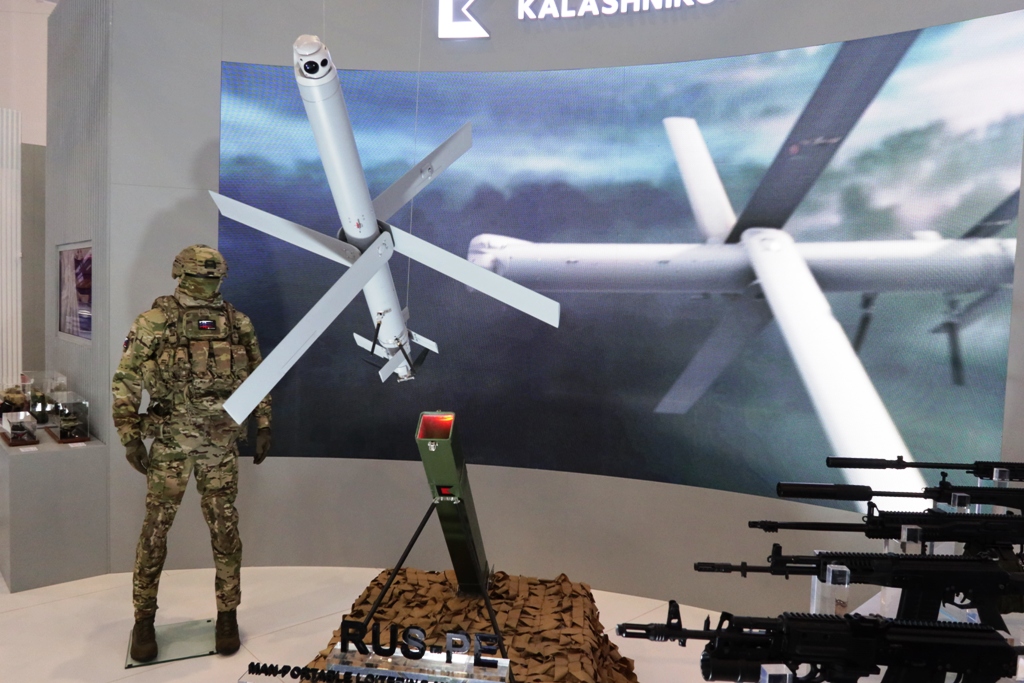 Τα περιφερόμενα πυρομαχικά έχουν γίνει πλέον συνηθισμένο στοιχείο στο περίπτερο της Kalashnikov στις περισσότερες εκθέσεις, και στο Ριάντ η ρωσική εταιρεία αποκάλυψε ένα νέο προϊόν, το RUS-PE.